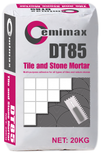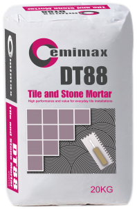 Cemimax DT88 is a polymer-modified, cement-based mortar for setting quarry, ceramic and most natural stone (including mosaics) and also for tiles over common interior surfaces, including exterior-grade plywood, as well as over exterior concrete and masonry surfaces. DT88 also can also be used to install porcelain tiles over common interior surfaces as well as exterior, horizontal concrete and masonry surfaces. DT88 is recommended for most tile sizes.